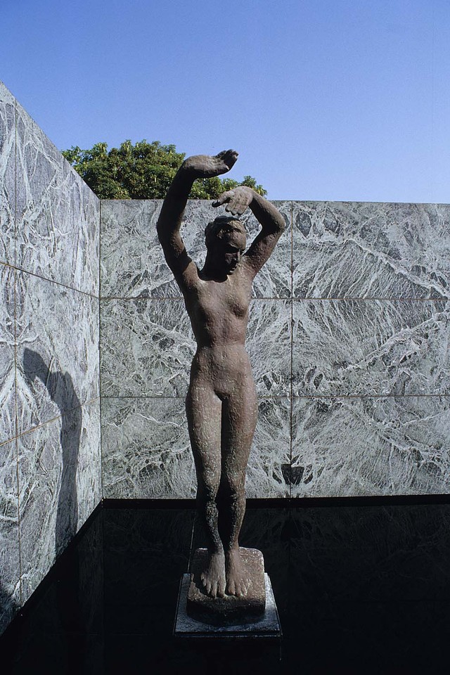 c. De la scupture, avec les fresques en bas-relief et les statues.