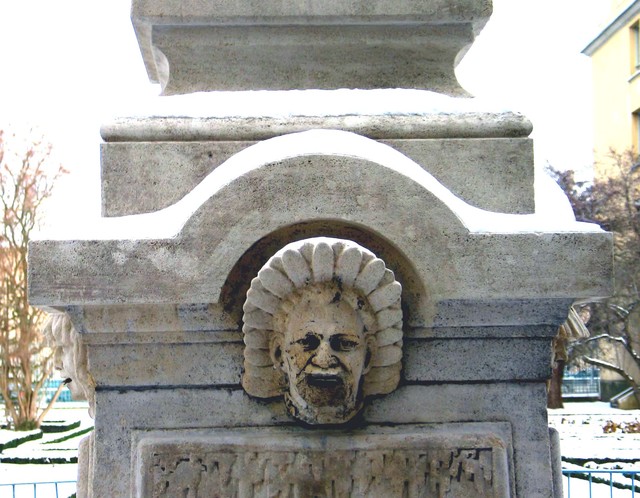 Ces têtes ornent un monument érigé à la mémoire d’un explorateur qui a été massacré en Amazonie par des indiens. Quand le bassin est en eau elles vomissent continuellement leur "sang impur". Est-ce par vengeance? Que me demande-t-on quand je passe au pied du monument? Qui dois-je plaindre? L’explorateur, sans doute, tant il est vrai que lui et ses compagnons ont apporté aux indiens l’elixir de longue vie.