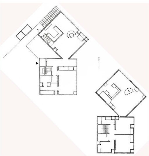 Ci-dessus : plan avec orientation des deux niveaux de la maison Fisher.