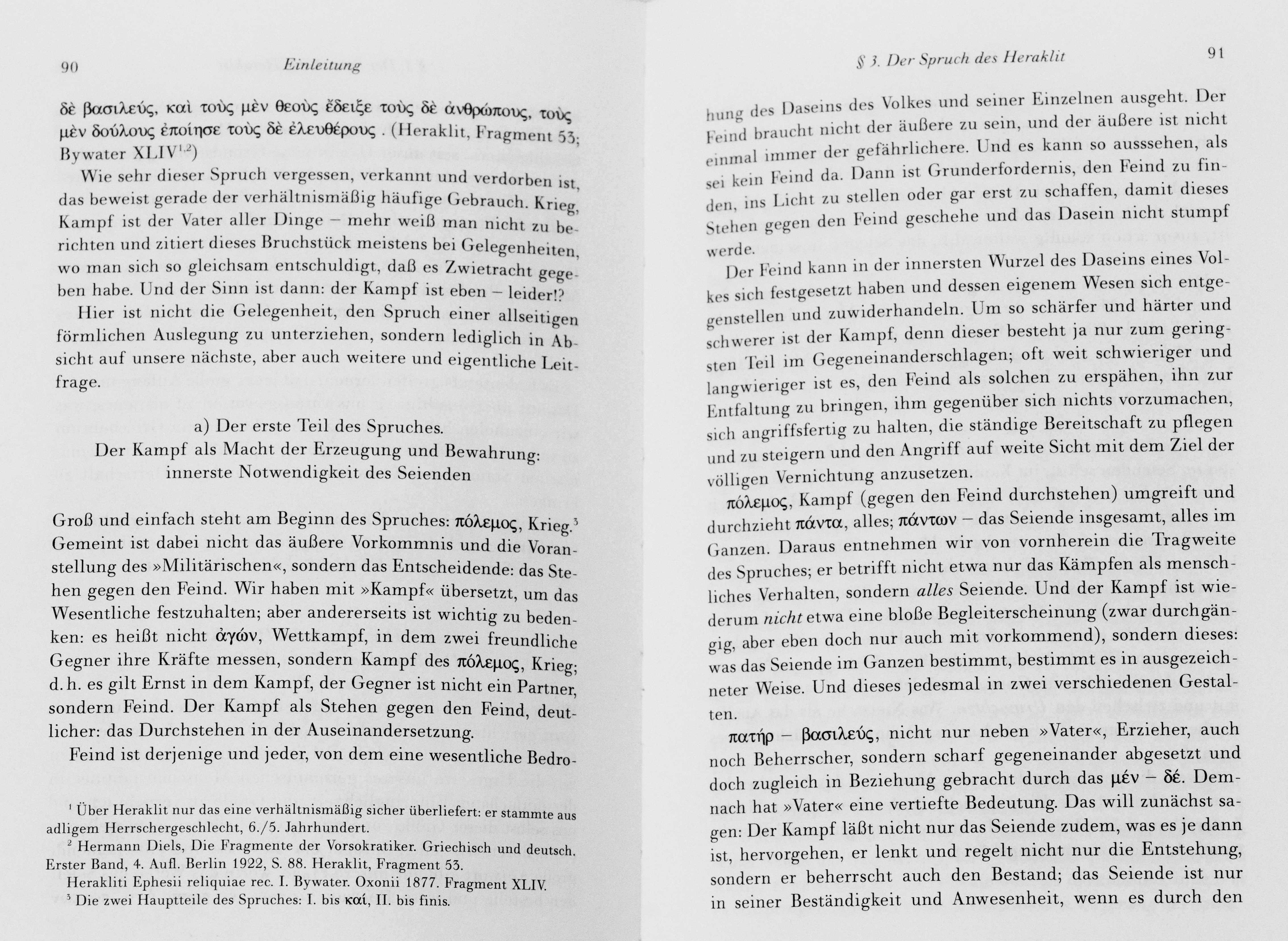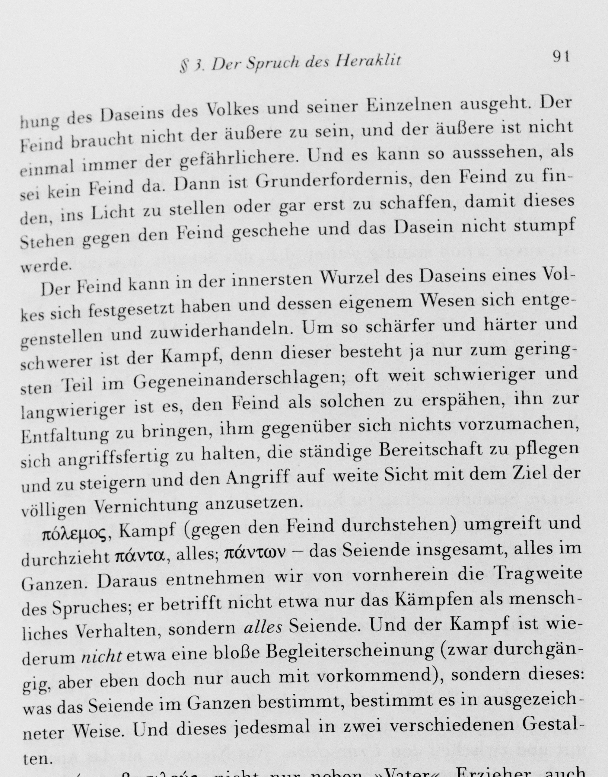 C’est à propos d’une traduction du grec polemos, saisi dans les fragments d’Héraclite, et interprété comme « combat », « guerre » et « confrontation » que Heidegger expose la nécessité de l’extermination.
