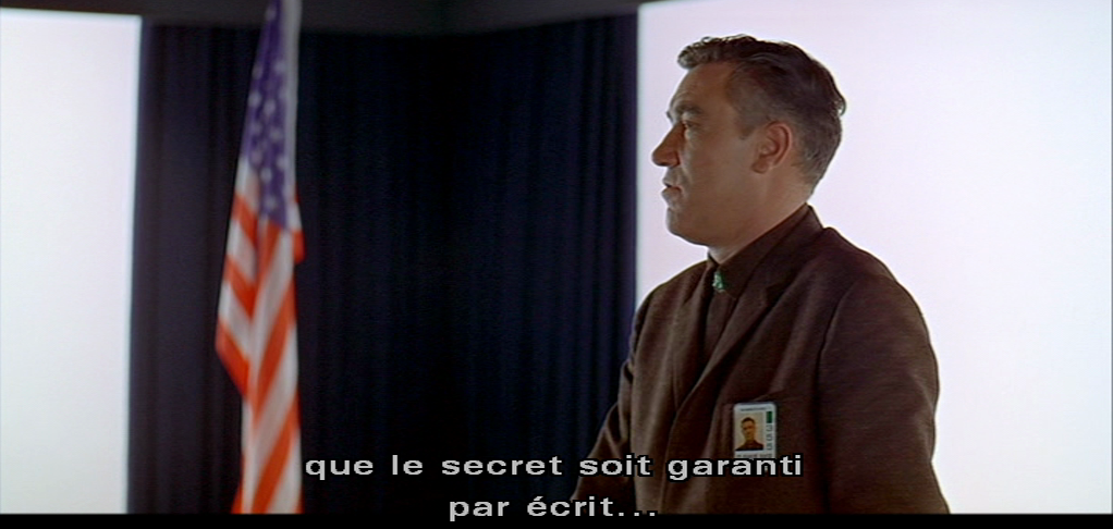 A l’évidence le corps de Floyd porte les traces de l’adoucissement des mœurs caractéristique de l’expérience humaine de la civilisation. Mais, ici, il menace très clairement bien qu’insidieusement l’auditoire de représailles au cas où quelqu’un s’aviserait de se mettre en contradiction avec son engagement écrit. La violence bureaucratique n’est pas toujours aussi précautionneuse. Kubrick a précisément cherché à montrer un maximum de « douceur » dans l’exercice de la violence. Mais, d’un trait de plume Floyd est susceptible, à l’instar de son ancêtre encore très simiesque d’allure, d’exterminer les « traîtres ». C’est avec un stylo, et non avec un os-massue, qu’il tue. Compte tenu de ses déclarations il en a le pouvoir.