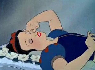 Restons près du texte et oublions que Walt Disney a cru bon de mettre des couleurs sur les joues de Blanche Neige (mais il est vrai que les Grimm disent aussi que Blanche Neige avaient de bonnes couleurs) :