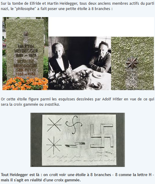Tout d’abord le 8 de l’étoile est le chiffre correspondant à H dans l’alphabet. L’étoile de Heidegger dit ainsi la « coappartenance » indéfectible du nom Heidegger au nom Hitler.