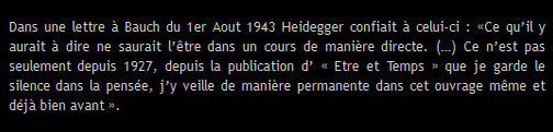 Et ce « silence dans la pensée », c’est celui du projet hitlérien d’extermination des juifs. Silence qui a perduré, avec des modalités différentes, jusqu’à la mort de Heidegger.