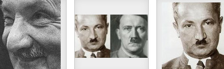Le Heidegger de gauche est le Heidegger dernière manière : il a ordonné à son rasoir de camoufler la moustache adolphique au sein d’une moustache beaucoup plus bonhomme. Mon oeil!