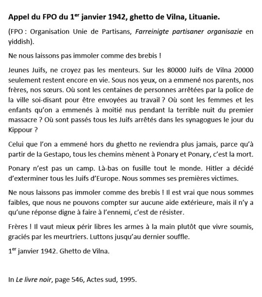 Quelques semaines avant la conférence de Wannsee (Berlin) des Juifs de Vilnius, en Lituanie, avaient conscience du projet nazi d’extermination totale des Juifs d’Europe. Et appelaient à la résistance armée.