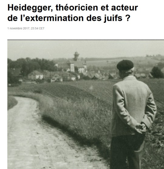 Cependant, ces opinions généreuses sont à présent périmées et récusées par deux séries convergentes de faits nouveaux : d’une part, les nouvelles publications programmées par Heidegger et notamment les Cahiers noirs, dont quatre tomes sont parus depuis 2014 ; d’autre part, les découvertes récentes et encore inédites de Miriam Wildenauer dans les archives du Reich. Les nouvelles publications établissent de façon désormais indiscutable le caractère exterminateur de l’antisémitisme heideggérien, alors que les archives attestent de sa participation active au premier cercle de la politique d’extermination.