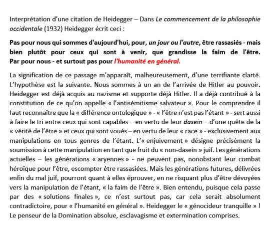 Pour l'essentiel ce blog est consacré à l'étude critique des rapports étroits que le philosophe Martin Heidegger a entretenu avec le nazisme. Heidegger et Hitler "sont la même chose".
